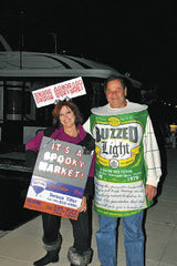Mike and Angela Parlier made a gruesome twosome, and the real coffin, complete with body, on Tommy King's front deck, was a fright to behold. Costumes ranged from NASCAR to Neverland, cowboys to aliens, flower children to Flintstones and an absent Jim Masiongale head on a stick. Decorated tables held all the food and drinks of all types flowed endlessly.